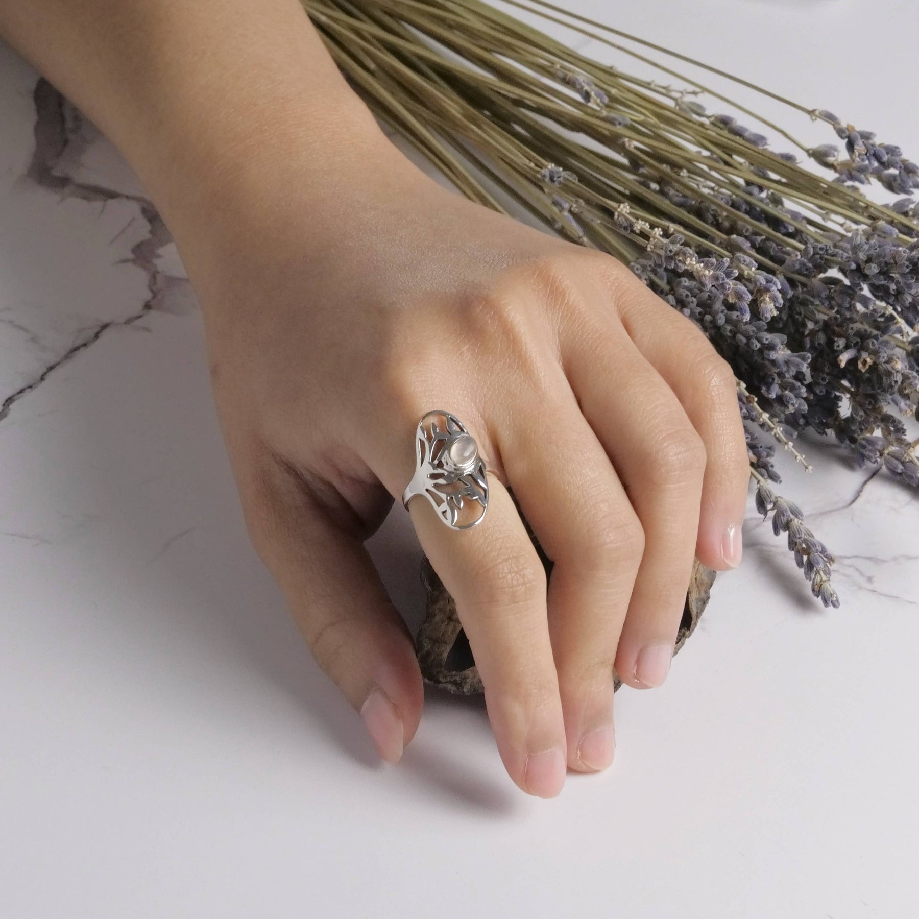 Sterling Silver Tree of Life Stone Ring
