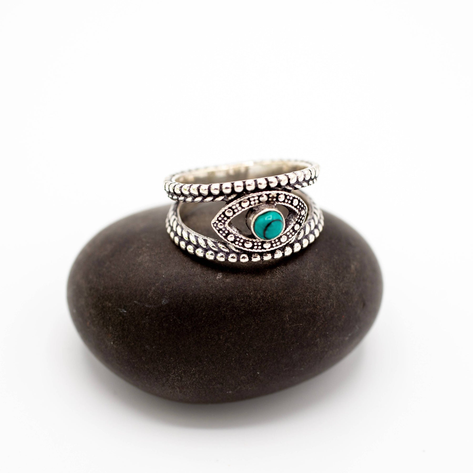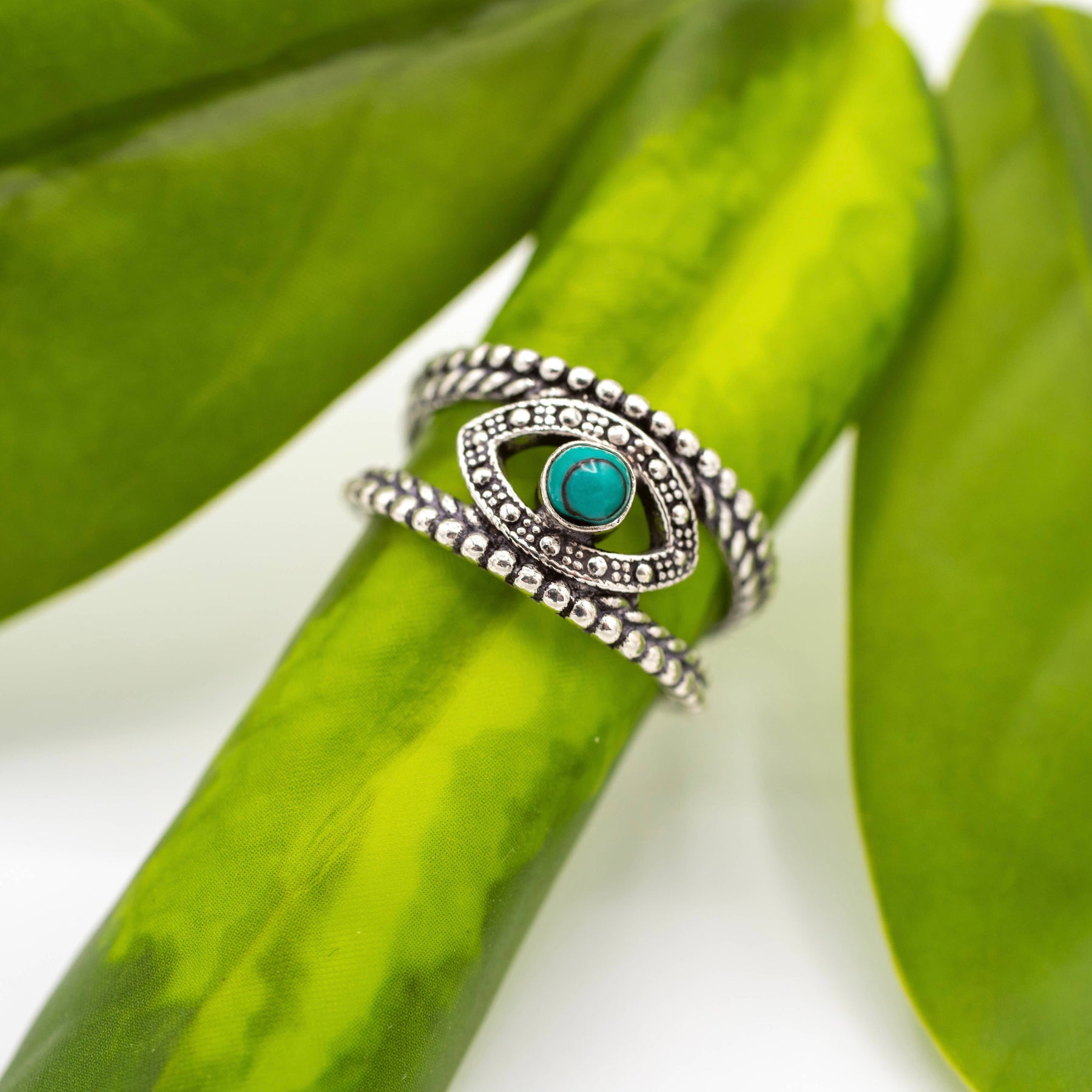 Sterling Silver Turquoise Open Band Eye Ring, available in sizes 5-10.