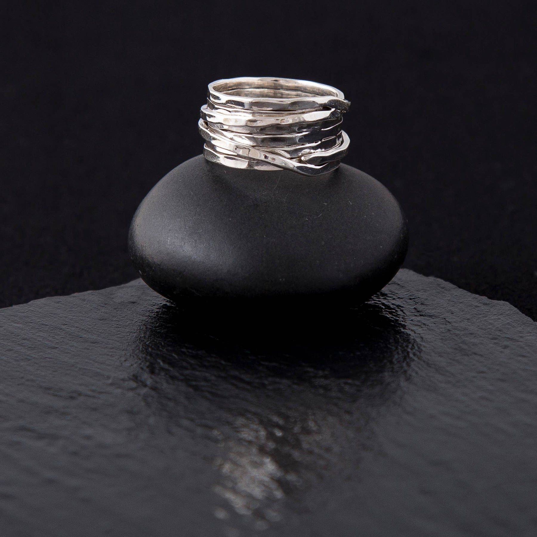 Sterling Silver Decorated Triple Stone Spinner Ring