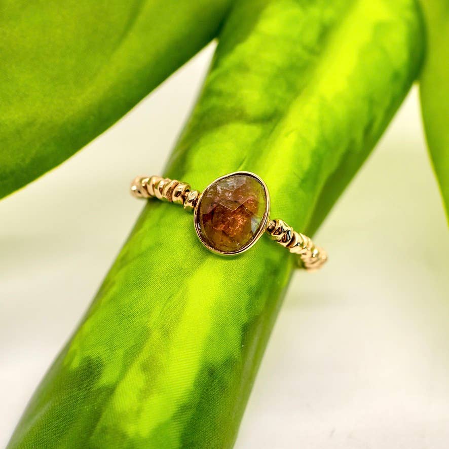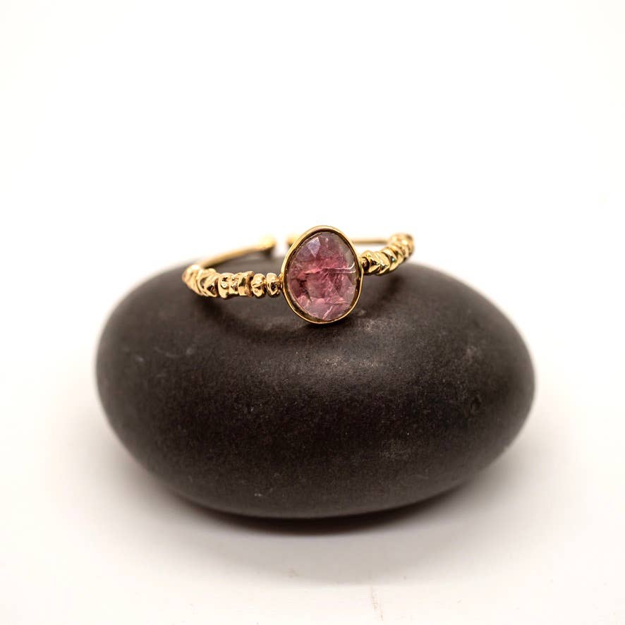 Brass ring featuring Tourmaline stone, pebble beads and open back, available in size 5-9.