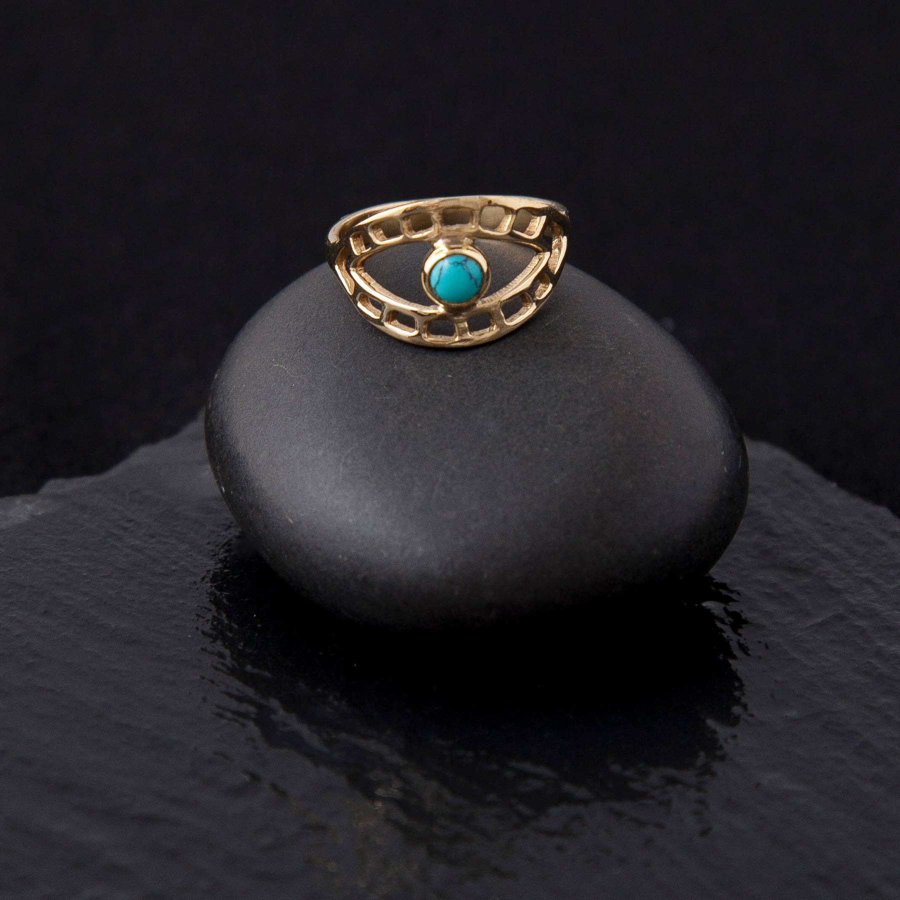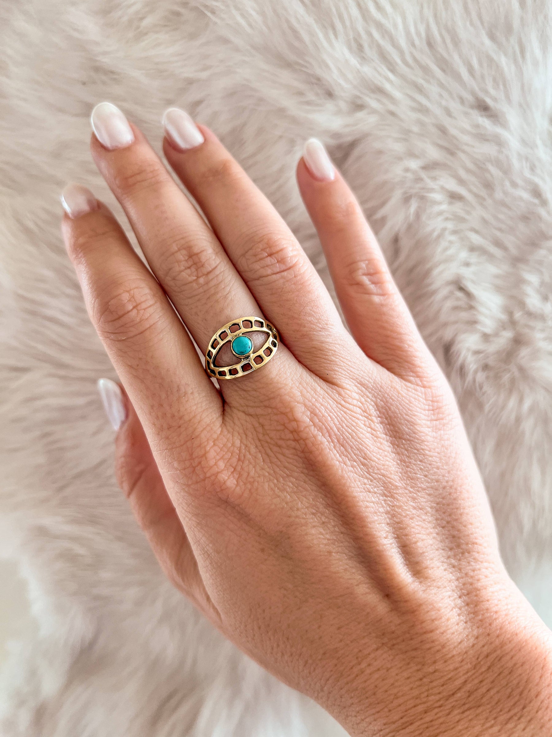 Brass third eye ring with turquoise stone.
