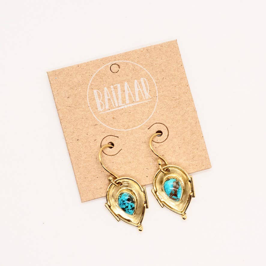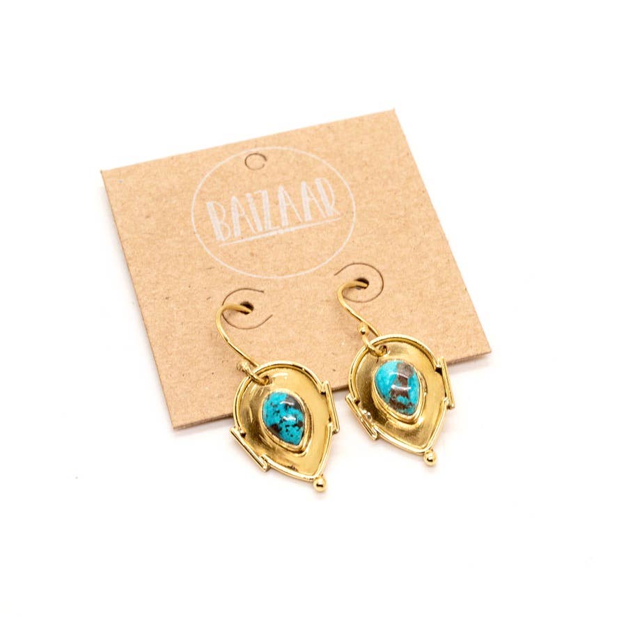 Brass Turquoise Teardrop Earrings