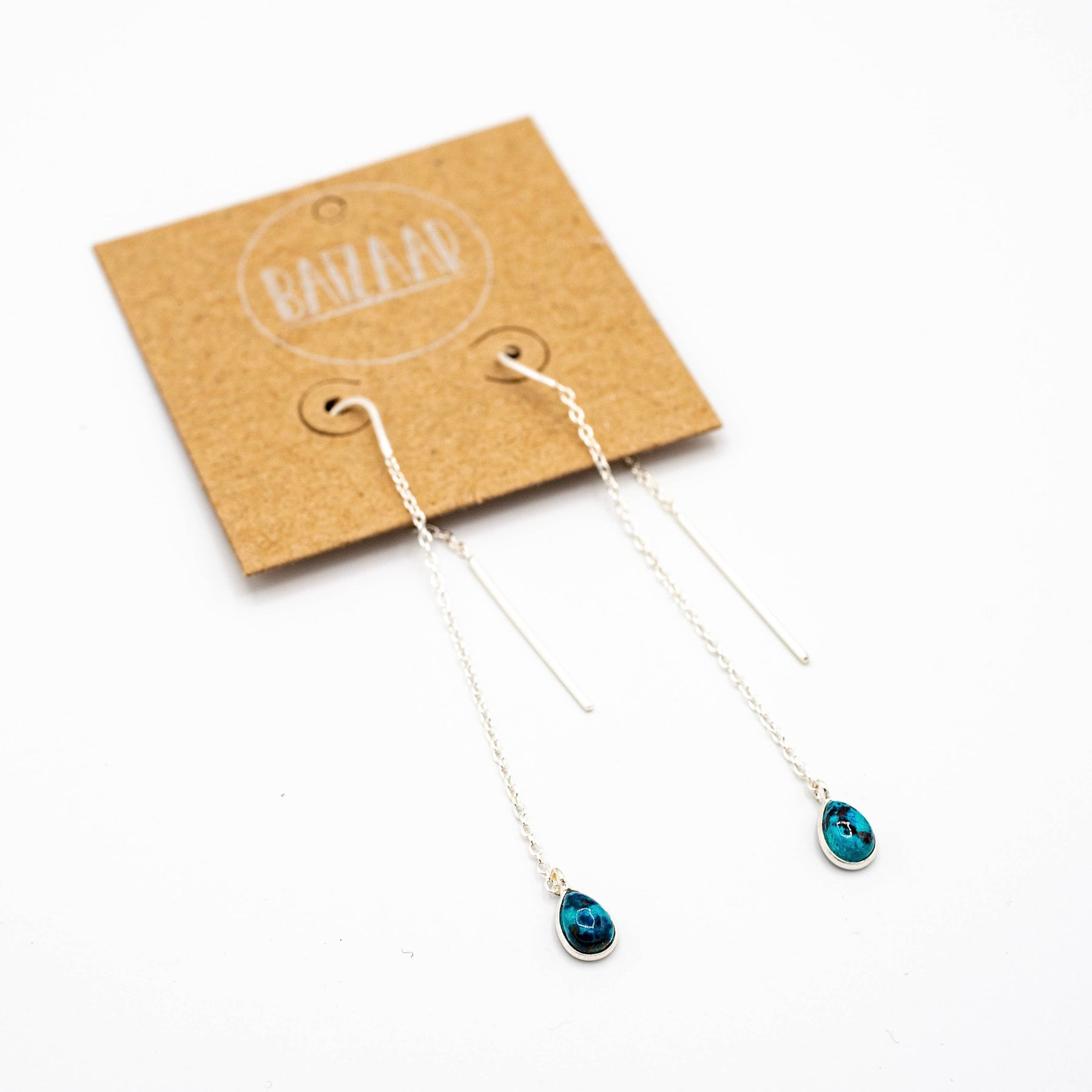 Delicate and beautiful sterling silver threader earrings, available in Turquoise or Amethyst.