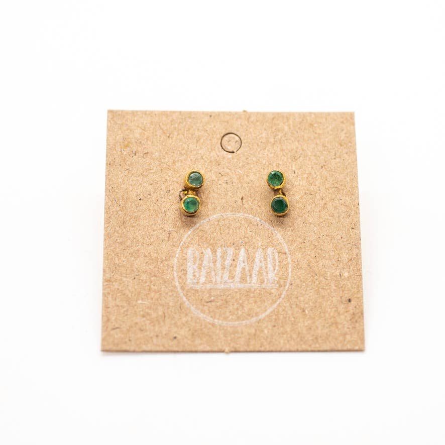 Tiny Stone Brass Stud - Turquoise, Moonstone, Emerald, Onyx