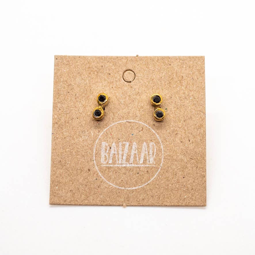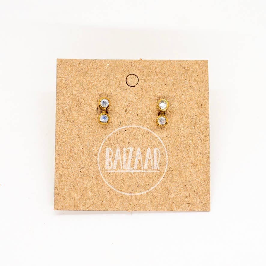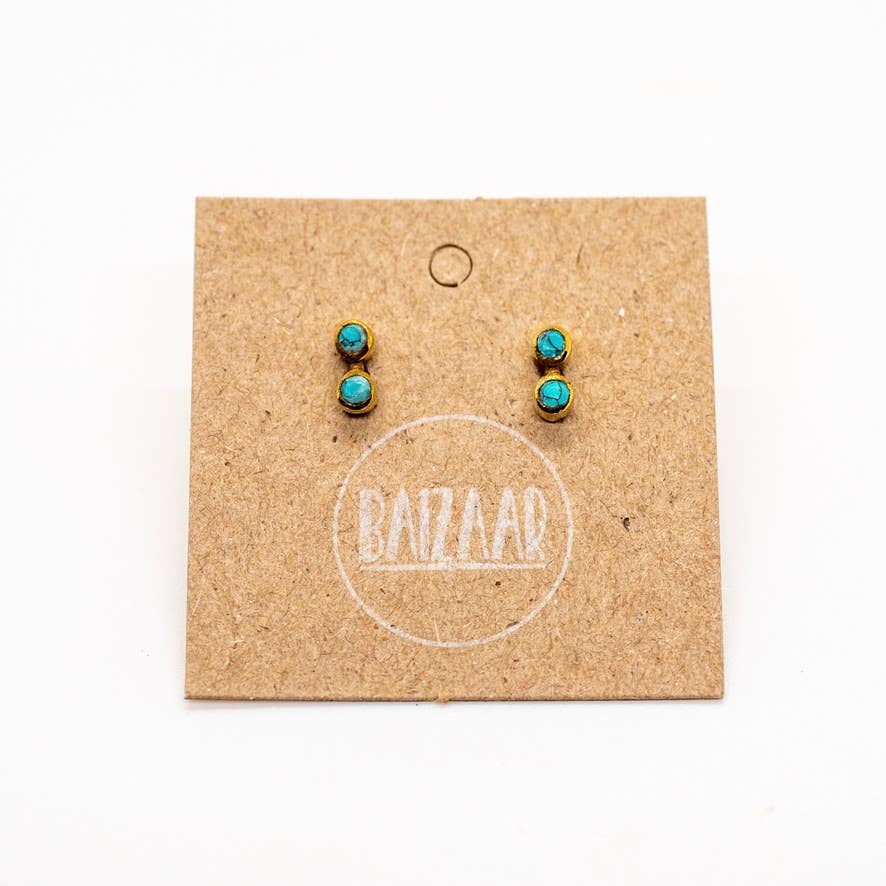Brass stud featuring two delicate faceted stones. Available in Turquoise, Moonstone, Emerald and Onyx